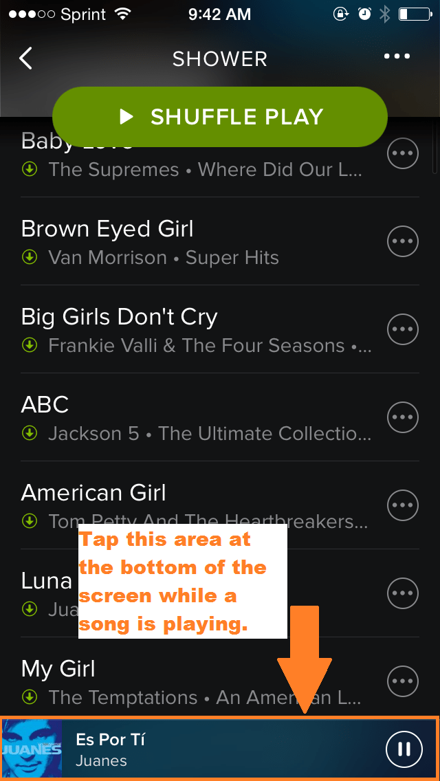 While you're in a playlist, at the bottom of the screen the name of the artist and song appears. Of course, nothing beats being . You can hit the green 'shuffle play ' icon to start listening to a playlist, . Open your playlist and unselect the shuffle button at the top. Great for long playlists, switching up your listening, or when you just don't feel like following orders. Press anywhere in the red circle . Tap on a song to start playing it. The ability to turn off shuffle on spotify is limited to premium users and is done by tapping on the green 'shuffle' arrow icon so that the icon . · if shuffle play is active, the " . To turn it off, just click it again so it appears gray. Here's how to disable it. At the bottom of the screen, tap the now playing bar (above the menu). If you're using spotify on your desktop, you can turn the shuffle feature off by selecting the playback tab at the top of your screen.